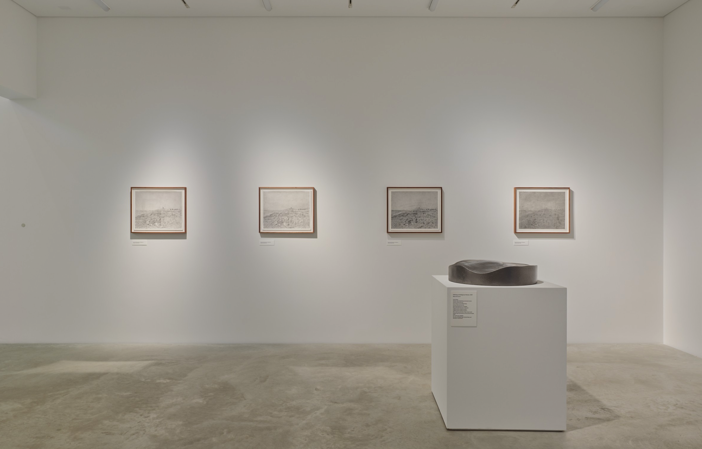 The exhibition Unseen Force explores the influence of invisible forces and the effects of time on objects. It features the works of Gala Porras-Kim, who investigates artifact preservation and the social and historical contexts surrounding them, including connections between past objects and contemporary conservation methods. The exhibition emphasizes visual pieces shaped by environmental conditions rather than human intervention over time.